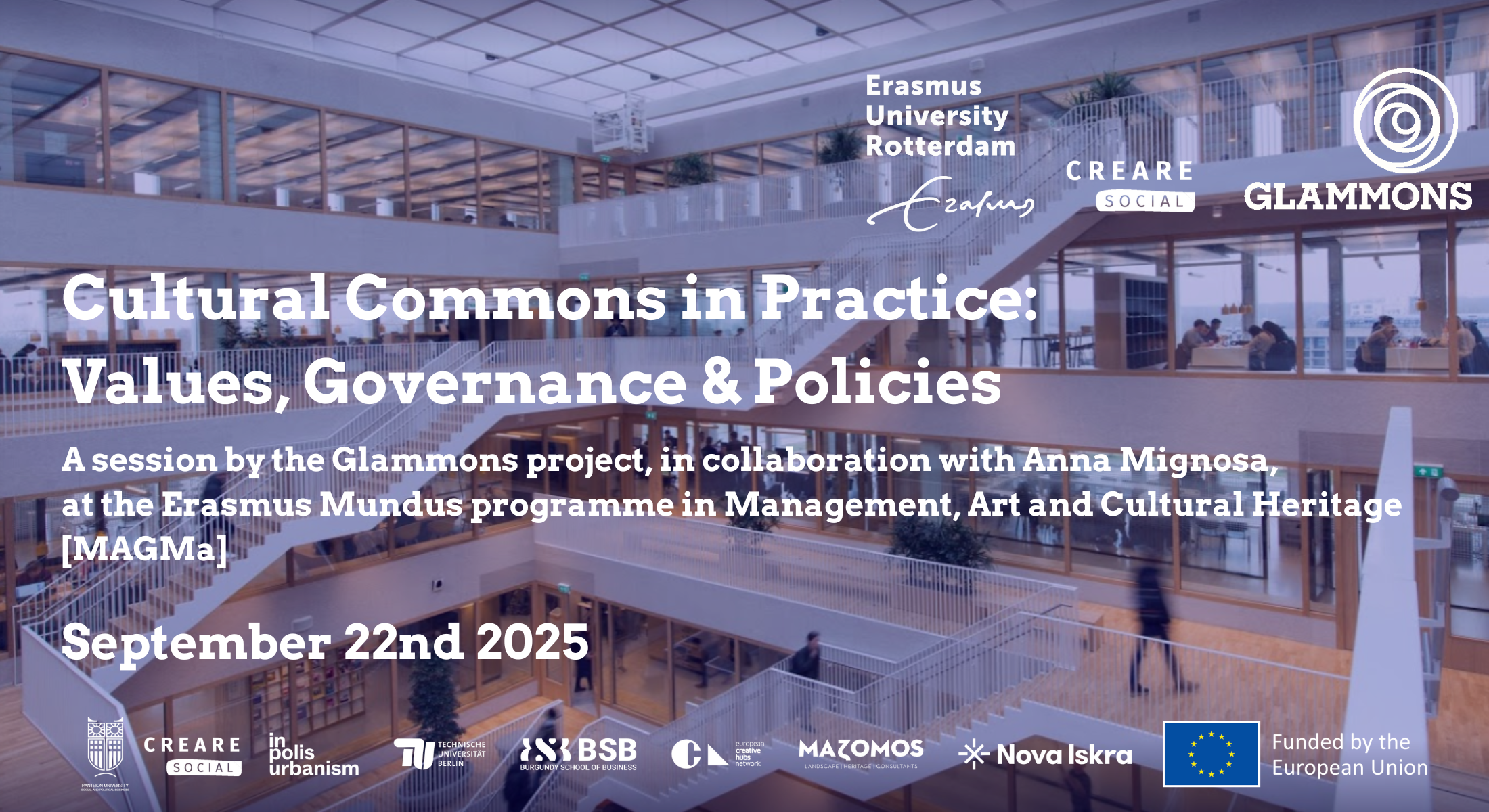 As part of the GLAMMONS project, we gathered one week ago at Erasmus University Rotterdam for ‘Cultural Commons in Practice: Values, Governance and Policies’, a session organised by CREARE Social in collaboration with Anna Mignosa.